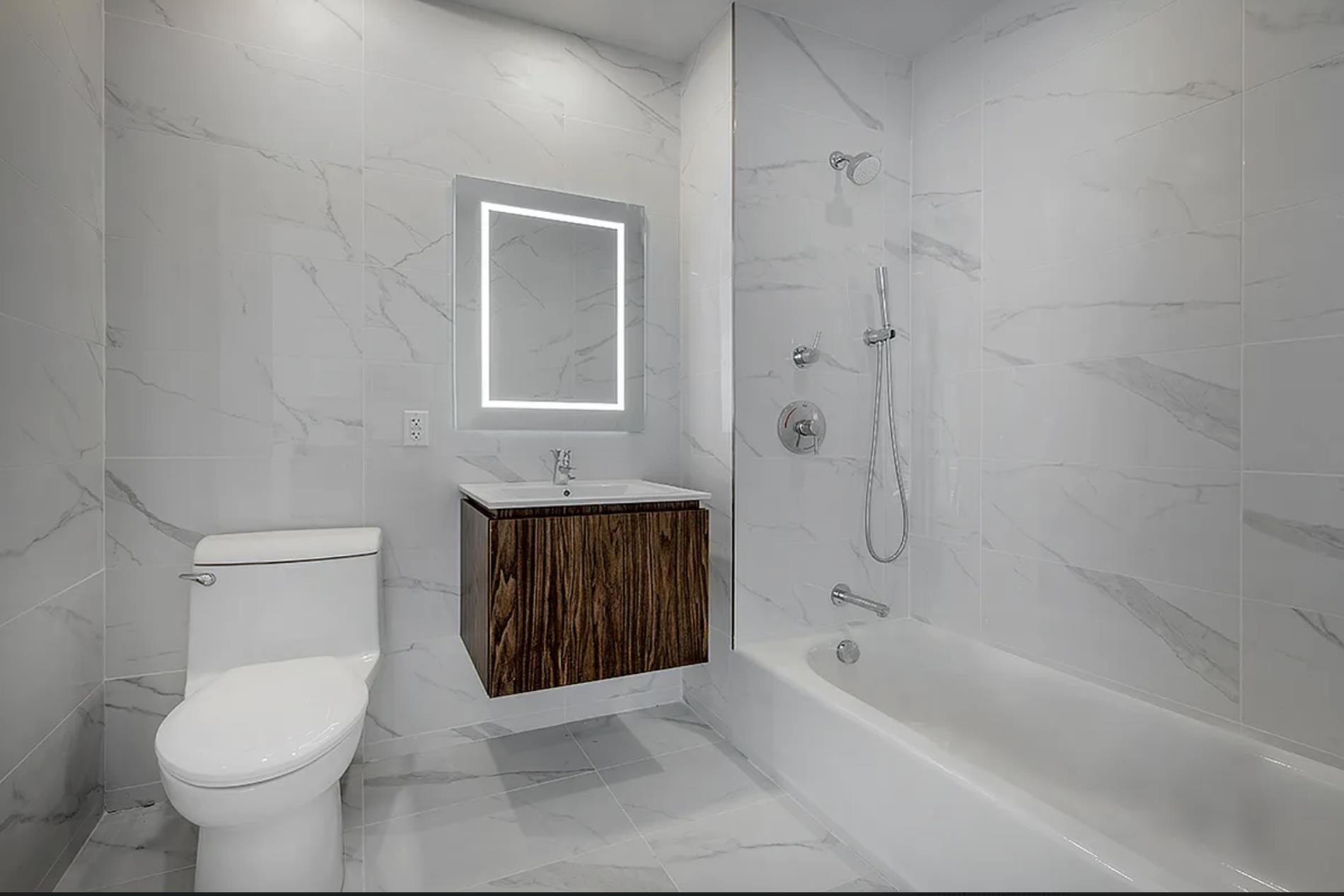 The Chef’s kitchens are fully equipped with high-end stainless steel appliances such as the Liebherr refrigerator and Samsung gas stove with 4-burner cooktop. Italian soft-close cabinets and drawers from GD Arredamenti, full-sized GE dishwasher and microwave, Quartz countertops, undermount sink, and cabinet lighting complete the elegant look. Bathrooms feature full floor-to-ceiling tile and a floating vanity with a built-in light. Each unit is also fitted with a thermostat-controlled VRF heating and air conditioning system.