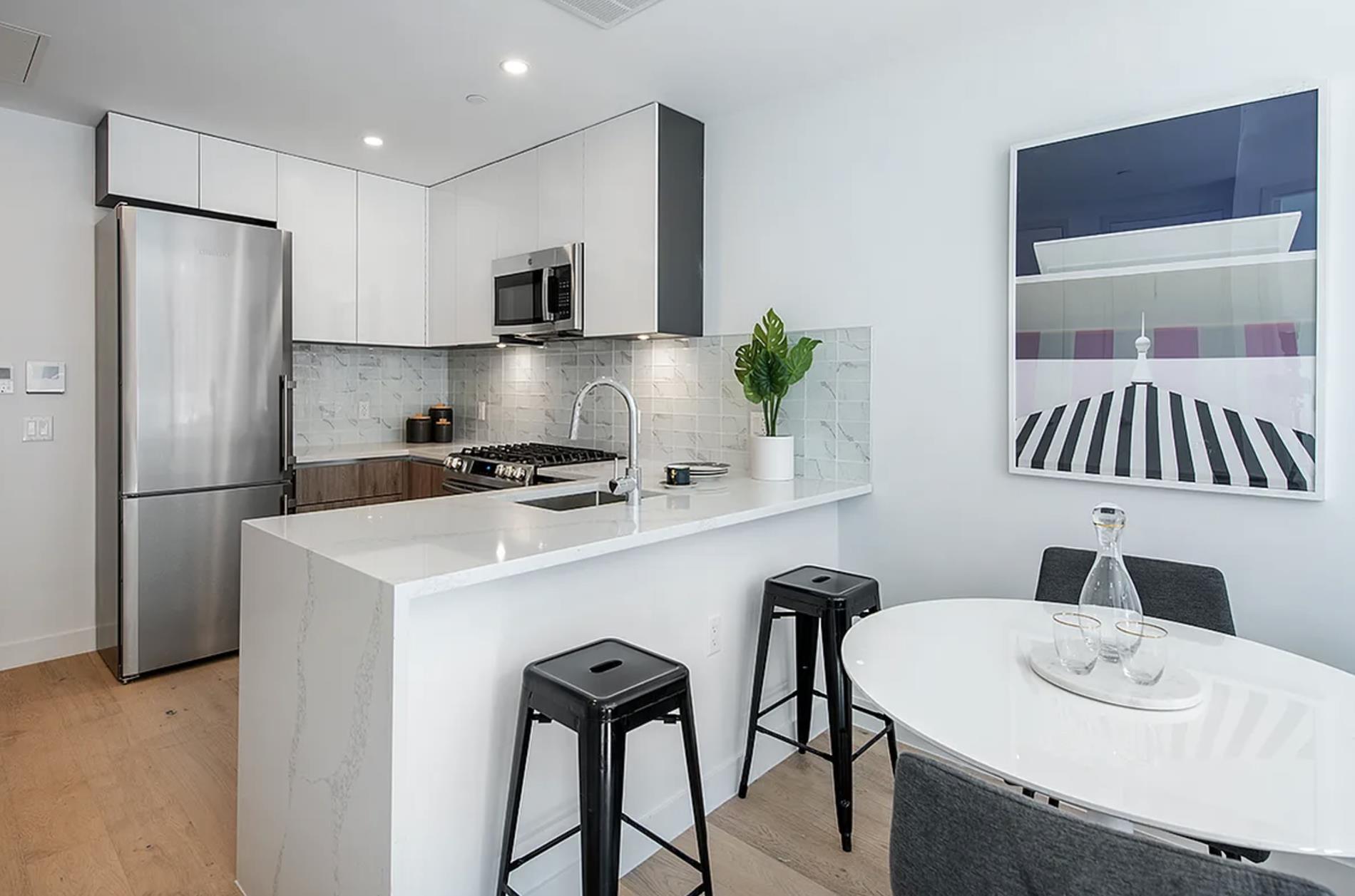 At Parkside Manor, we believe that true luxury is in the details. The triple-pane thermal windows keep the temperature regulated and minimize noise. Our quartz countertops, glass-tile backsplashes, 9’ ceilings, and walk-in closets are just a few of the many luxuries you can expect. With only 90 units, you also get to experience the luxury of living in a true community where you can connect with your neighbors.