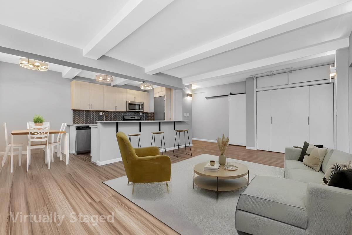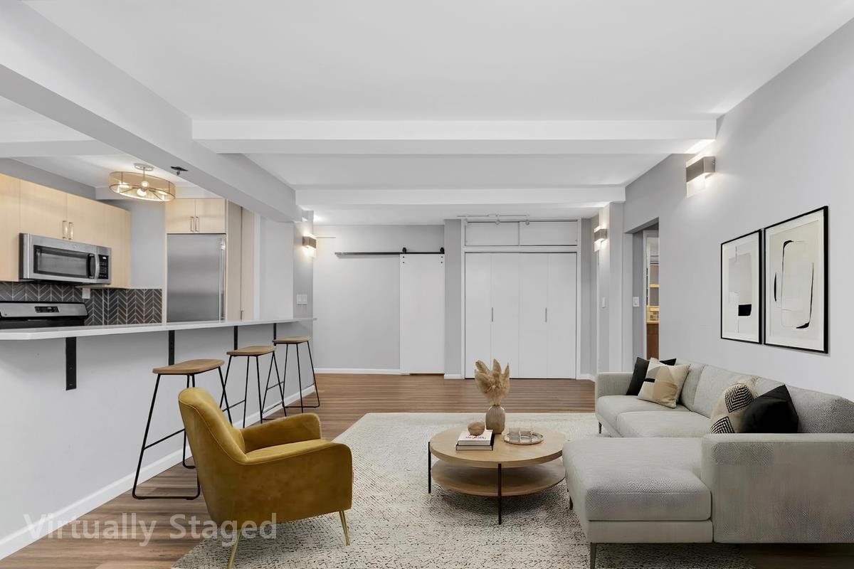 Residents enjoy white-glove building amenities, including 24/7 doorman service, a live-in superintendent, resident storage, laundry facilities, and a bike room.