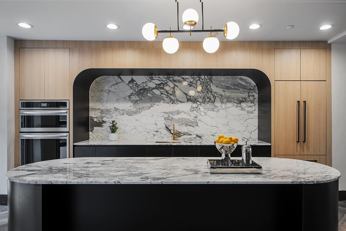 Catering kitchen with ice-maker, dishwasher, wine chiller, and bar seating