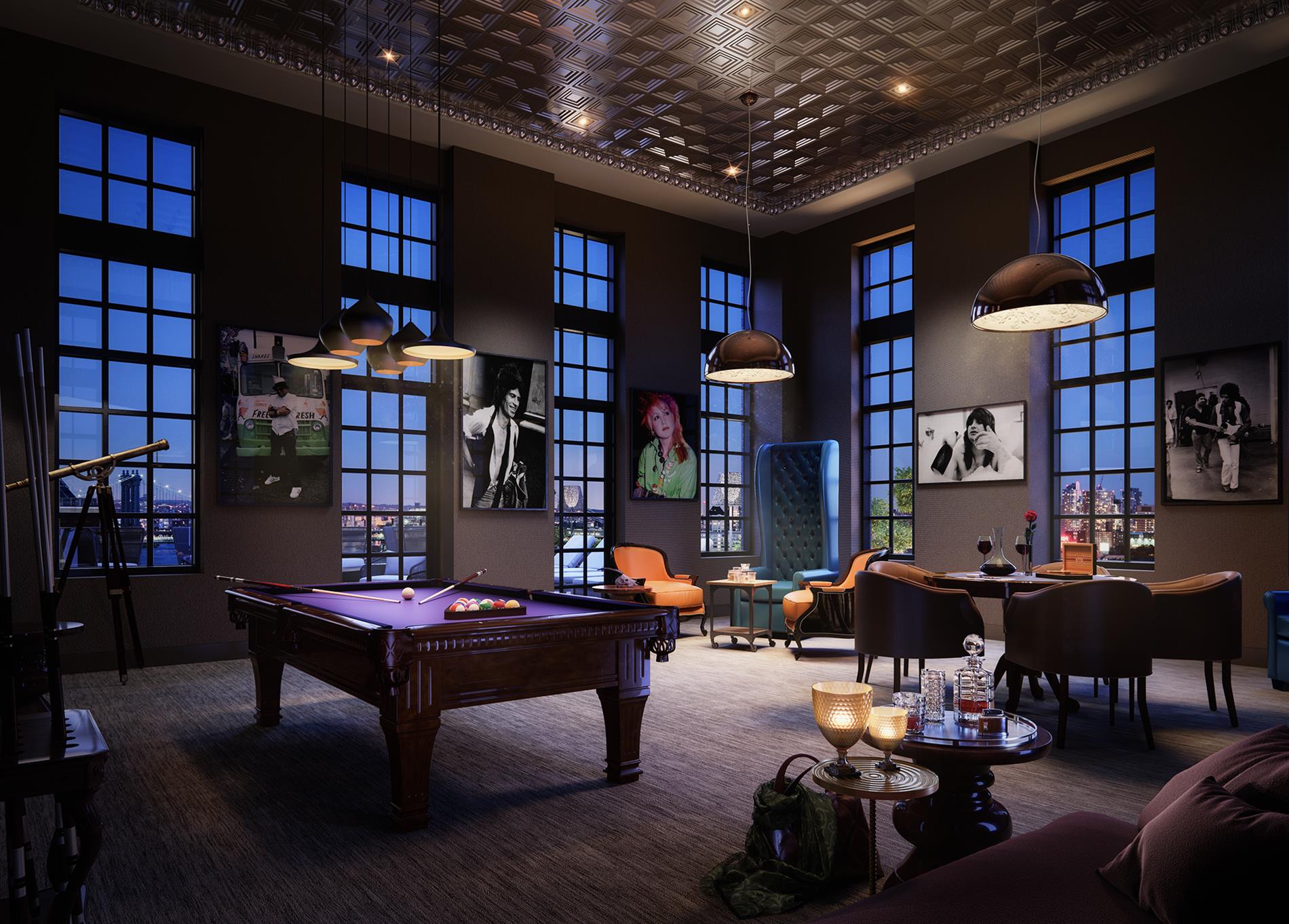 Residents can enjoy Exhibit’s elegant amenity package which includes a fitness center, yoga studio and Peloton cycle stations. Overlooking Manhattan is our Penthouse-level Resident’s Club. Pour a cocktail from your private wine and spirits storage while entertaining your friends in the Parlor! Custom billiards and poker tables are surrounded by elegant and custom designed pieces by Jimmie Martin of London. Sit by the fireplace in the Lounge and take in the sweeping views through 24’ floor-to-ceiling windows. Finally, entertain in the Club’s private dining room and demonstration kitchen as the lights from the entire city provide a backdrop for your evening. The entire Club is surrounded by a landscaped terrace overlooking Manhattan and the Brooklyn Bridge, complete with outdoor fireplace and screening area.