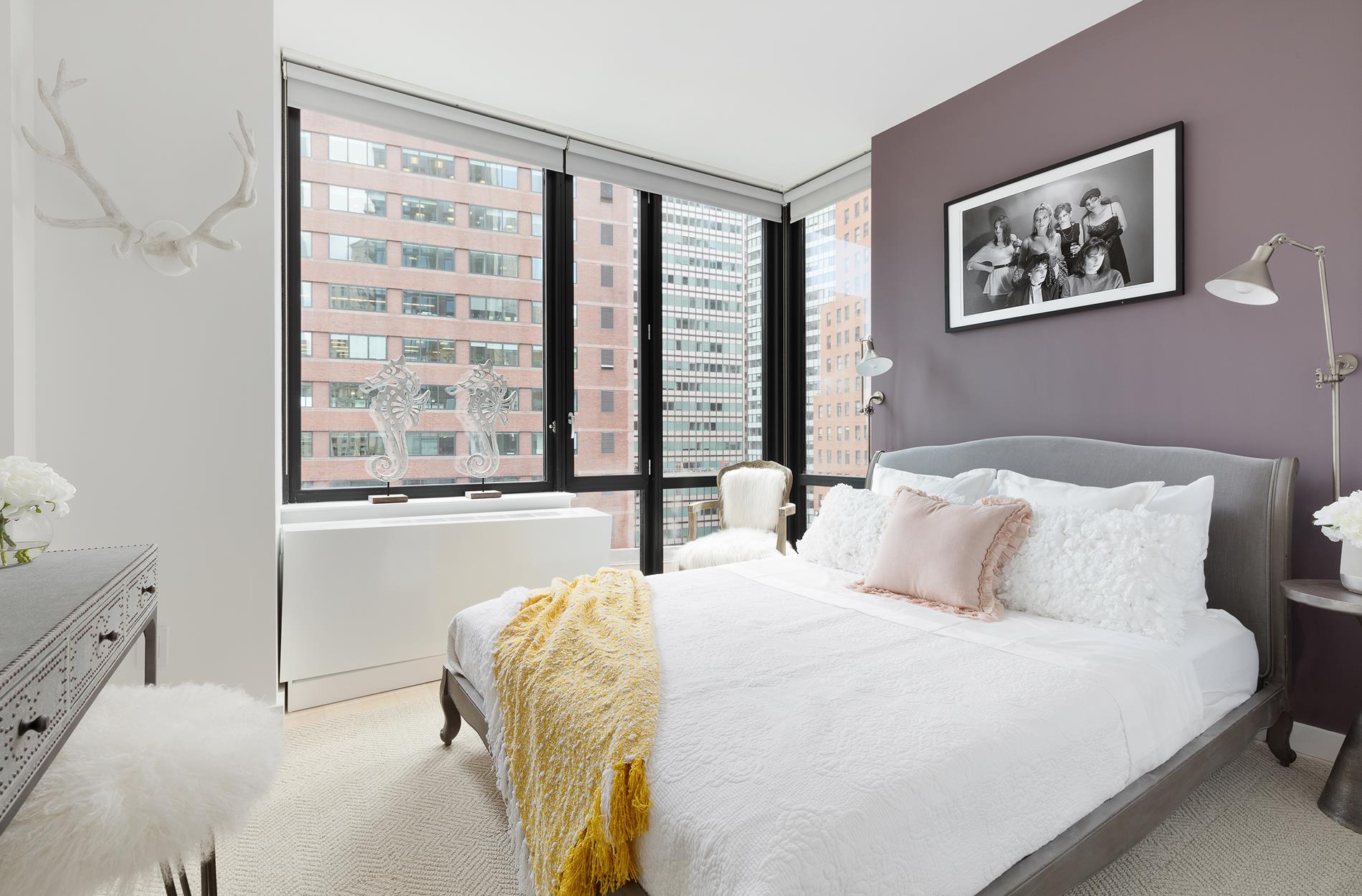 SUNNY 2-bedroom & 2-bathroom featuring high ceilings, stunning floor to ceiling windows, washer/dryer + private balcony! This popular corner split bedroom floorplan will not last!