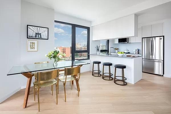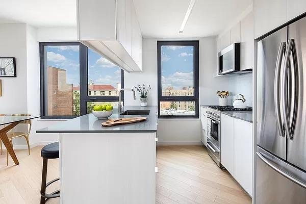 *Stunning 3 Bedroom / 2 Bathroom with Bright & Sunny Triple Exposures, Large Private Balcony, In-Unit Washer/Dryer, and Open City Views of the Manhattan Skyline!* Introducing Roosevelt Parc – a brand new, premier development in Jackson Heights, consisting of 154 luxurious residences and 40,000 square feet of amenities! Choose from several thoughtfully designed layouts, ranging from studios to 4 bedrooms, many with private outdoor space. Every home produces a distinguished vibe with sustainable wide-plank oak flooring, custom-built closet systems, and thermal double-pane windows with solar shades featuring spectacular views of the NYC skyline! Immerse yourself in luxury with top-of-the-line finishes, including stainless steel appliances, soft closing drawers, Italian cabinetry, glass backsplash, and stone countertops; plus oversized bathrooms featuring deep soaking tubs or glass-enclosed showers.