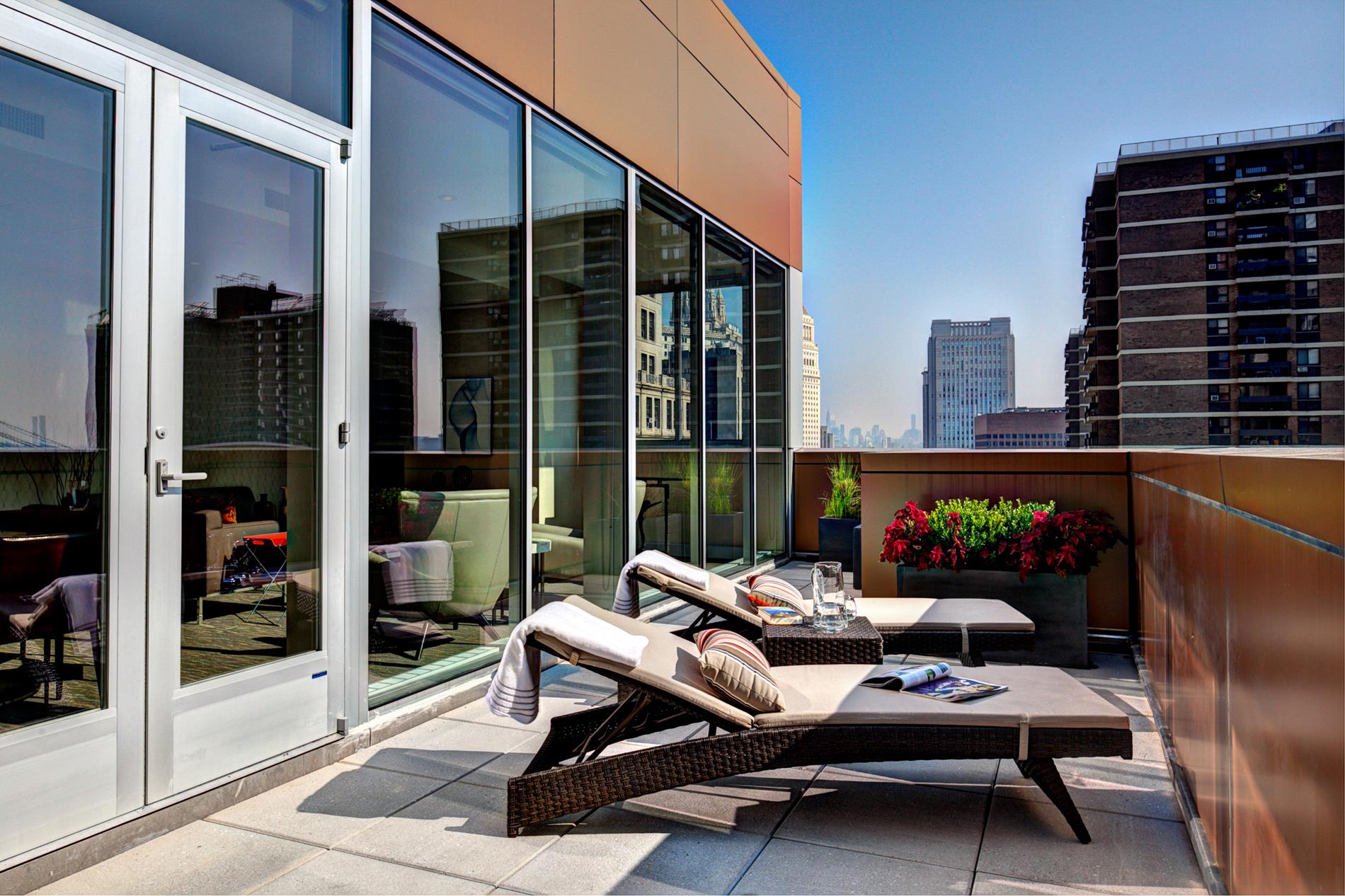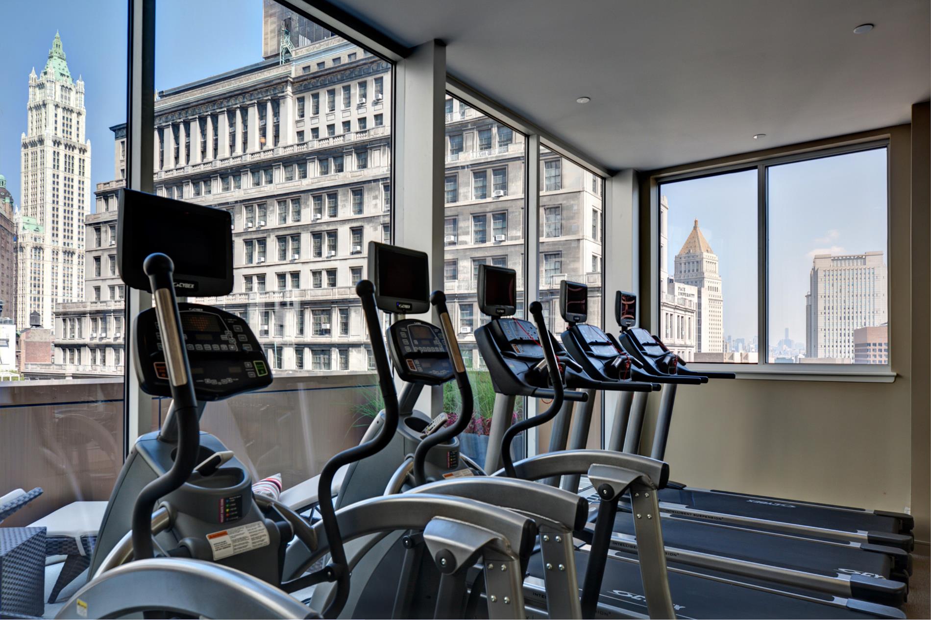 Amenities at 40 Gold Street include a large, beautifully equipped and newly renovated fitness center with additional outdoor work-out space overlooking the city skyline, club room with working fireplace and kitchenette, furnished roof-top terraces with a BBQ grill, 24-hour concierge and advanced security systems with key fob access. Each apartment is also pre-wired for FIOS and Spectrum Cable.