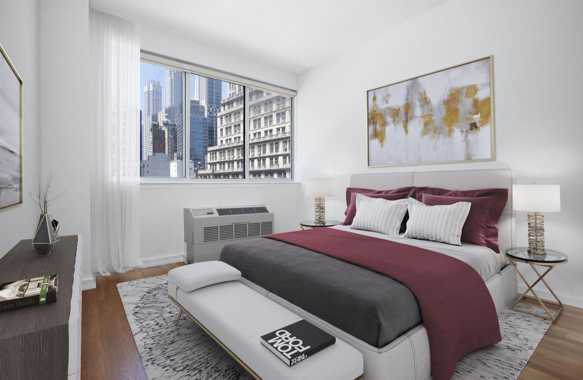 40 Gold Street is a modern boutique rental development in the heart of the Financial District with 56 units, comprising 40 two-bedrooms and 16 studio residences. Designed by Meltzer/Mandl Architects, the apartments are beautifully laid out with high ceilings, red oak floors, and floor-to-ceiling closets. All apartments feature modern solar shades for the oversized windows that allow for maximum privacy while allowing light to infuse throughout. All two-bedroom apartments benefit from split wings and 2 full bathrooms for optimal privacy. Kitchens are fitted with custom wood cabinetry with self-closing drawers, granite countertops with glass backsplashes, and include stainless steel appliances from signature manufacturers as GE, LG, Samsung, and Fisher Paykel appliances, plus dedicated ice-makers. The porcelain-tiled bathrooms feature Duravit and Toto toilets and Kohler sinks and hardware. Many bathrooms have a window as well.