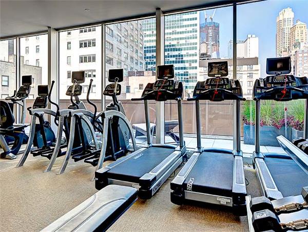 Amenities at 40 Gold Street include a large, beautifully equipped and newly renovated fitness center with additional outdoor work-out space overlooking the city skyline, club room with working fireplace and kitchenette, furnished roof-top terraces with a BBQ grill, 24-hour concierge and advanced security systems with key fob access. Each apartment is also pre-wired for FIOS and Spectrum Cable.