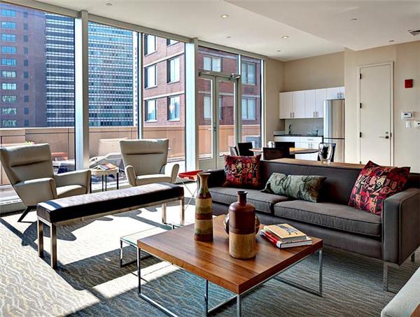 40 Gold Street is a modern boutique rental development in the heart of the Financial District with 56 units, comprising 40 two-bedrooms and 16 studio residences. Designed by Meltzer Mandl Architects, the apartments are beautifully laid out with high ceilings, red oak floors and floor-to-ceiling closets. All apartments feature modern solar shades for the oversized windows that allow for maximum privacy while allowing light to infuse throughout. All two-bedroom apartments benefit from split wings for optimal privacy. Kitchens are fitted with custom wood cabinetry with self-closing drawers, granite countertops with glass backsplashes, and include stainless steel appliances from such signature manufacturers as GE, LG, Samsung and Fisher Paykel appliances, plus dedicated ice-makers. The porcelain-tiled bathrooms also have many of the bells and whistles associated with luxury products, including Duravit and Toto toilets and Kohler sinks and hardware. SORRY, NO PETS ALLOWED.